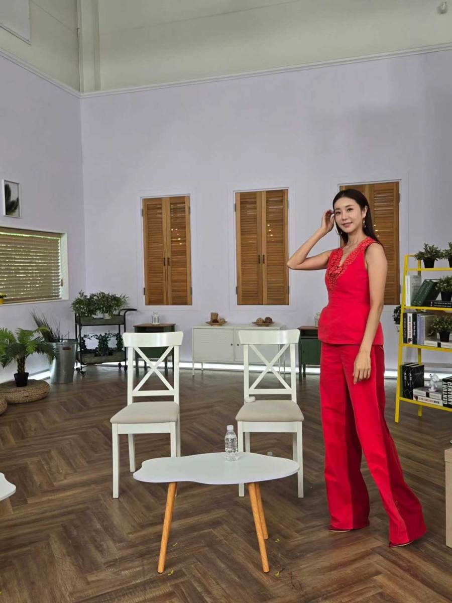 화이트 체어에 앉아 찍은 또 다른 장면에서는 레드 수트를 입었다. 어깨부터 발끝까지 매끈하게 이어지는 수트 라인은 그가 가진 긴 기럭지와 잘 맞아떨어졌다. 표정 하나만 바꿔도 분위기가 달라지며, 마치 광고 화보를 보는 듯한 인상을 주었다. 팬들은 “진짜 패션 교과서 같다” “빨간색이 이렇게 잘 어울릴 수 있나”라며 감탄을 쏟아냈다.