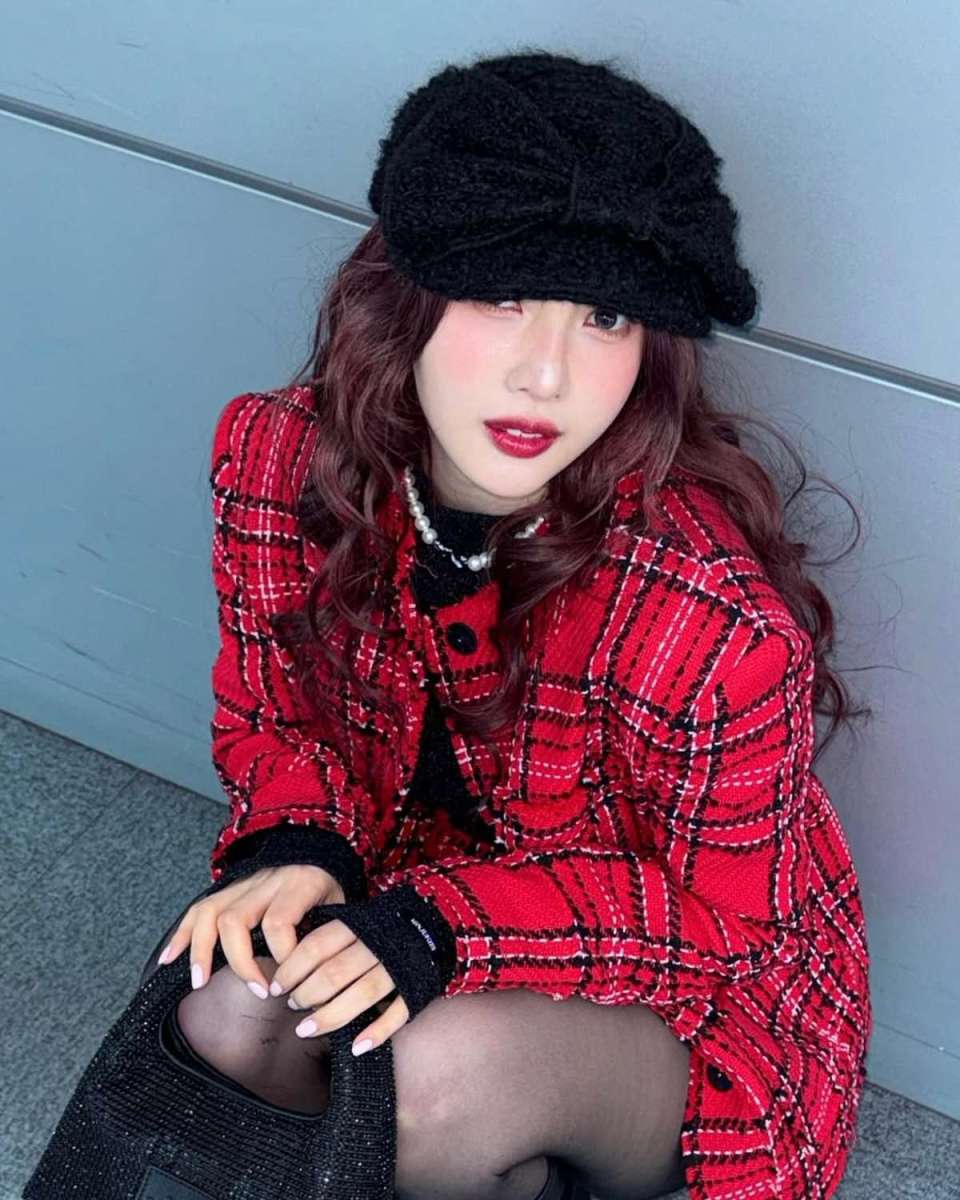 블랙 미니백을 들어 전체 색감의 균형을 잡았다. 레드와 블랙의 대비가 뚜렷하면서도 과하지 않다. 트위드 특유의 질감 덕분에 따뜻함이 느껴져 겨울 스타일의 매력을 잘 보여준다.