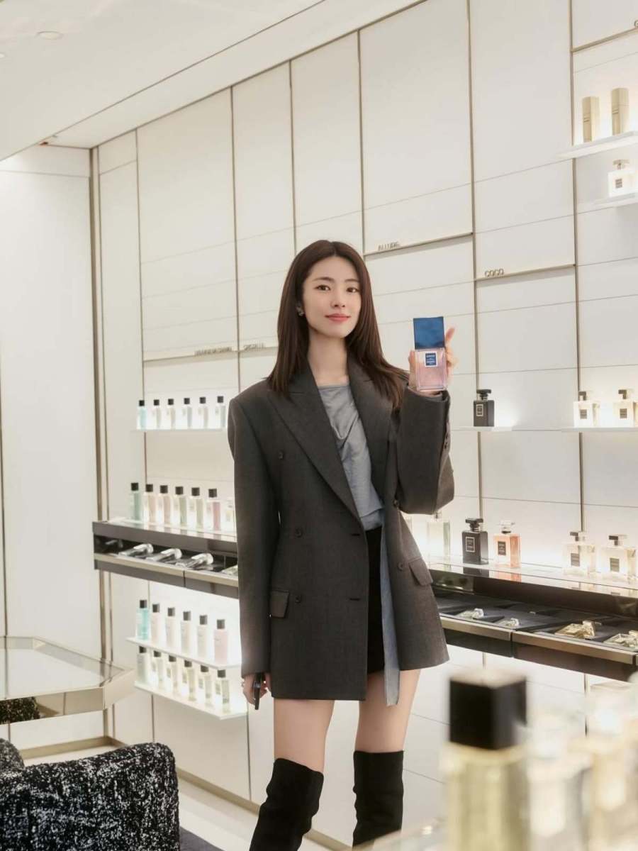 액세서리는 최대한 미니멀하게 연출했다. 작은 이어링과 얇은 반지 등 간결한 주얼리로 세련미를 더했고 소형 클러치와 휴대폰만을 소지해 실용성까지 갖췄다. 헤어스타일은 내추럴 스트레이트로 연출해 전체적인 룩에 깔끔함을 강조했다.