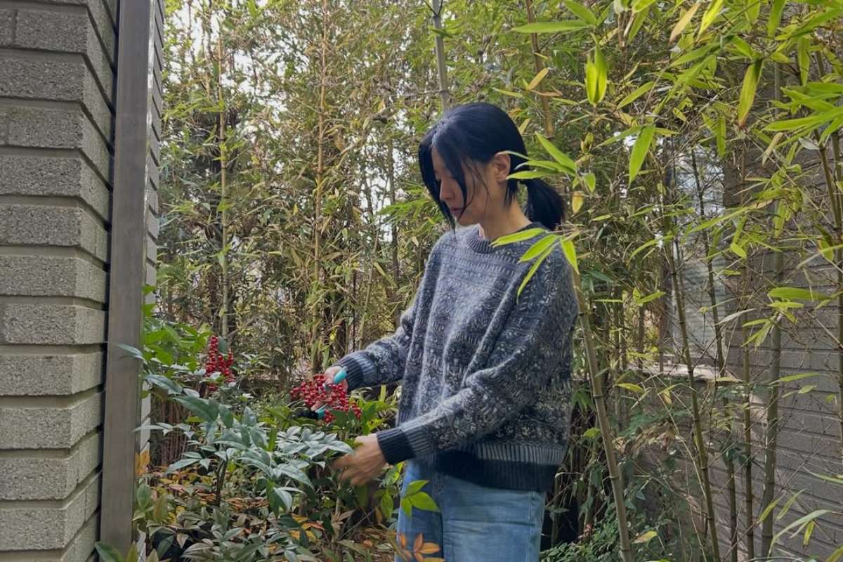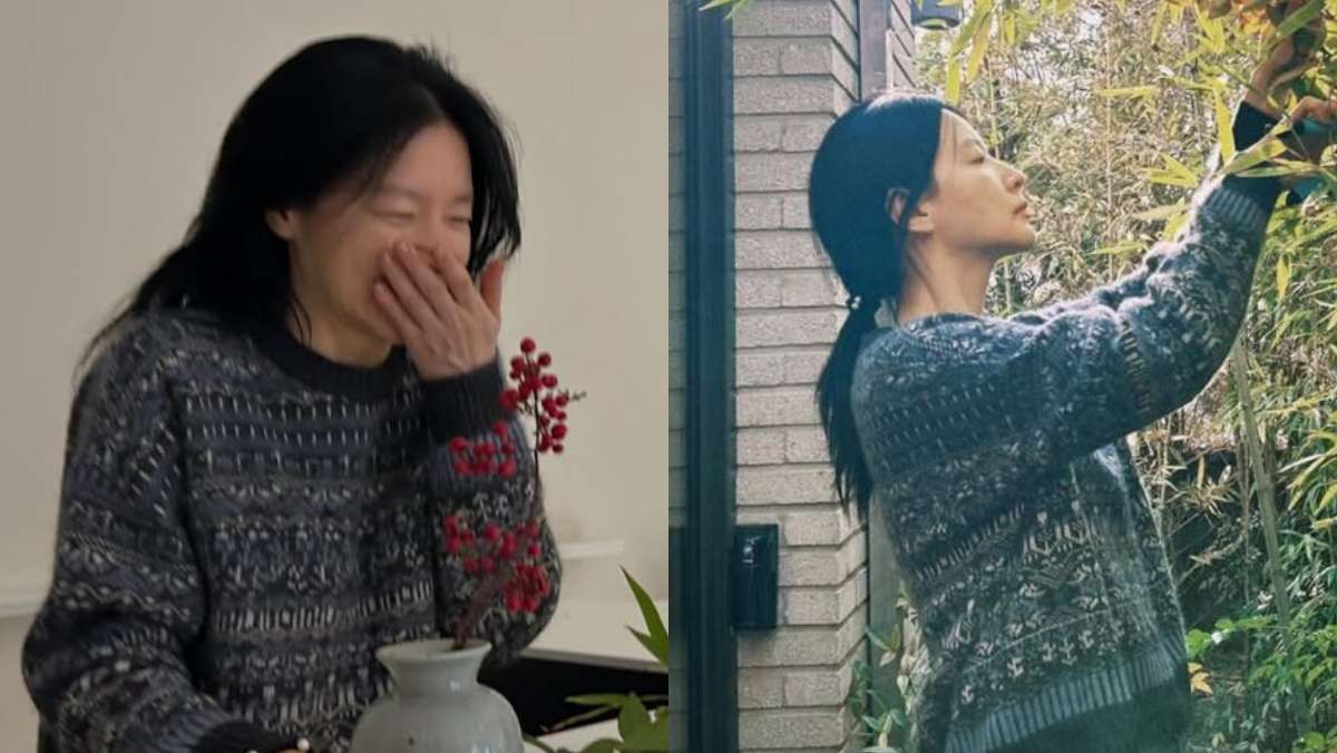 니트 스웨터는 부드러운 촉감과 차분한 색상, 클래식한 패턴으로 겨울철 데일리룩에 제격이다. 여기에 기본 디자인의 데님 팬츠를 더해 실내외 어디서나 부담 없이 소화 가능한 캐주얼 무드를 완성했다. 원예용 가위와 직접 꺾은 나뭇가지를 활용해 자연 친화적인 모습을 드러내는 장면도 눈길을 끈다. 실내에서는 도자기 화병과 식물을 활용한 플랜테리어 스타일링으로 공간까지 따뜻하게 연출했다.